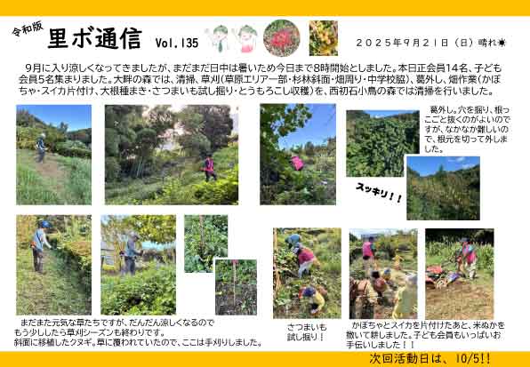 里山ボランティア流山の過去の活動記録 2025年7月~9月